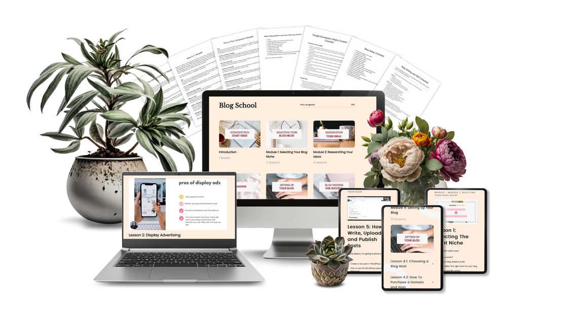 In this comprehensive 12-video module, I will be walking you through how to get your blog set up in minutes, not months! From purchasing your blog host, publishing your first post, customising the look of your first post and SO much more, I have everything covered.