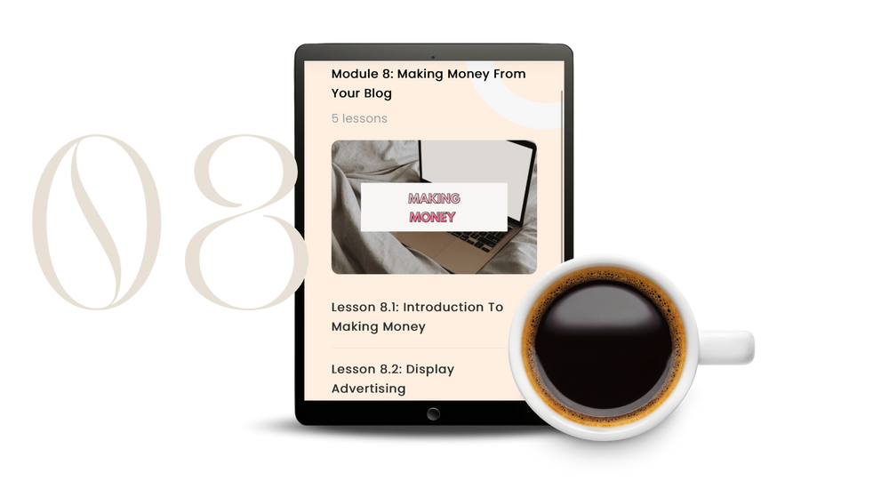Into the juicy part - I’ll be showing you through the various ways you can use your blog to start generating some real, consistent income including through ads, affiliate marketing, selling digital products and working with brands.
